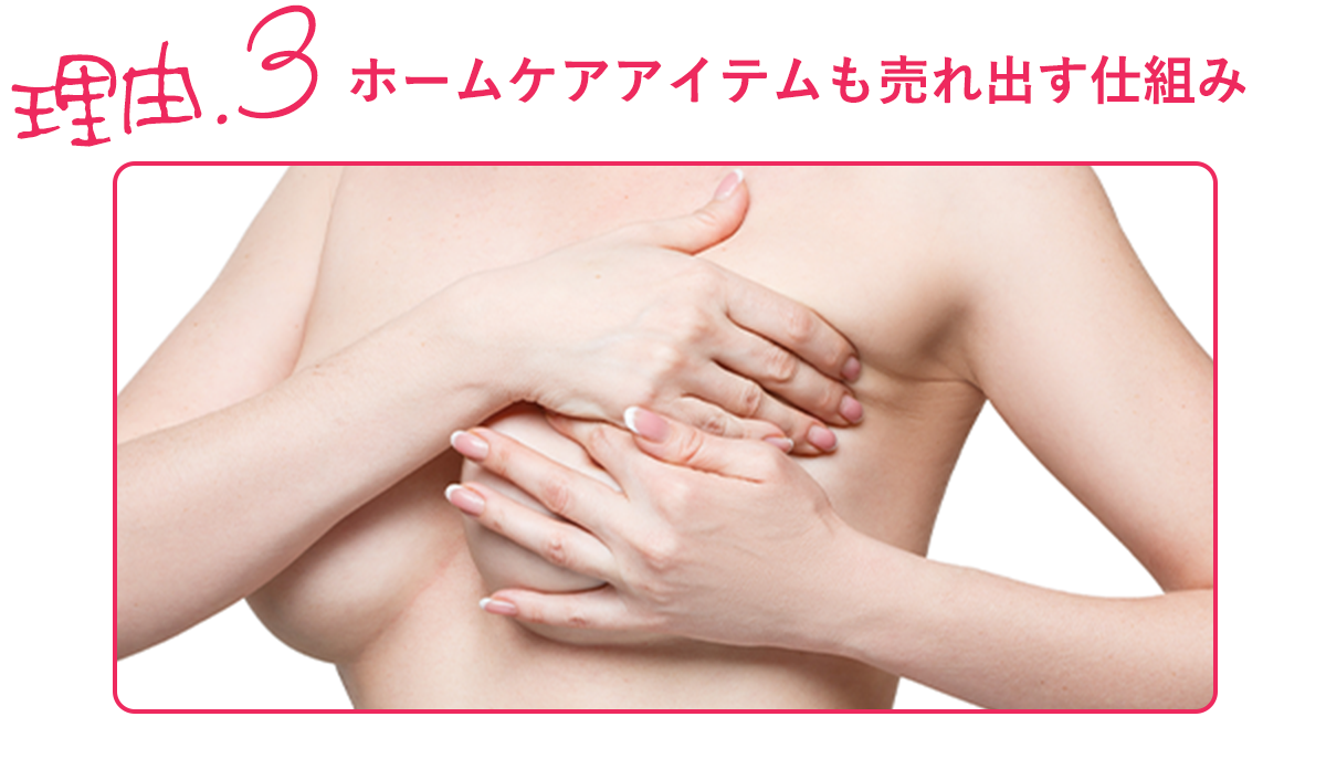 だからこそ、ホームケア商品が自動的に売れていきます。販売力に自信が無くてもOK!施術に組み込むから、ドンドン売れる!